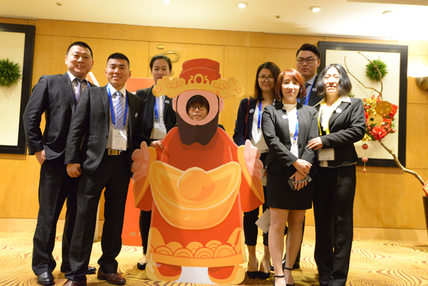下午一時整,會議開始。參加本次年會的精英隨紅毯進入會場。集團董事長張朝棟先生,總裁朱華龍先生及總部各部負責人列隊迎賓,并以握手或擁抱歡迎遠道而來的貴賓及精英。這一刻,再度體現集團公司尊榮的企業文化。